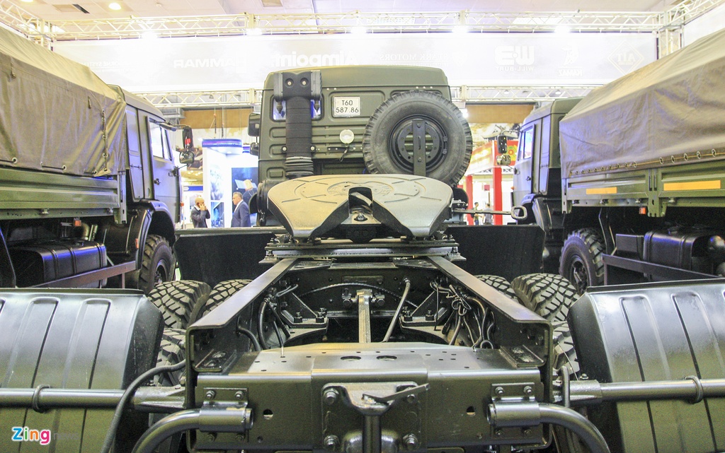 Bộ ba mẫu xe tải hạng nặng được nhập khẩu nguyên chiếc từ Nga. Ở giữa là xe đầu kéo Kamaz-65525, được sử dụng rộng rãi trong quân đội Nga từ năm 2013, chuyên dùng cho các nhiệm vụ vận chuyển xe tăng chiến đấu chủ lực T-90, T-72, hệ thống pháo tự hành và một số xe thiết giáp khác.
